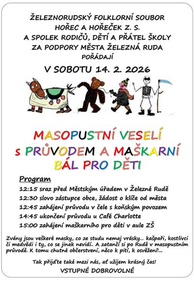 | Masopustní veselí s průvodem a maškarní bál pro děti | ||