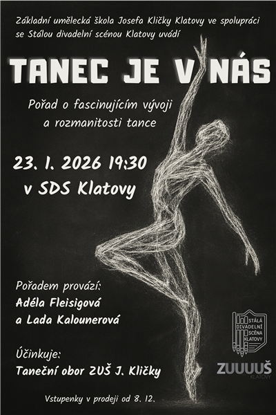 Vzdělávací pořad Tanec je v nás provází diváky fascinujícím vývojem tance od jeho prastarých rituálních kořenů až po současné moderní formy. Prostřednictvím ukázek, rozhovorů a krátkých choreografií představuje rozmanitost tanečních stylů a jejich význam pro člověka i společnost. Pořad inspiruje k zamyšlení nad tím, že tanec není jen umělecký výraz, ale i přirozený způsob komunikace a propojení těla, duše a hudby - protože tanec je skutečně v nás. Pořad je určen všem, kteří chtějí objevovat tanec a jeho příběh - od dětí až po dospělé. Pořadem provází Adéla Fleisigová a Lada Kalounerová, účinkuje taneční obor Základní umělecké školy J. Kličky Klatovy. | ||