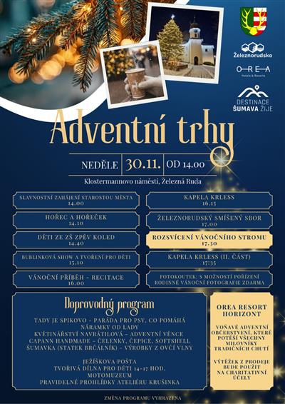 První adventní trhy v Železné Rudě se budou konat na první adventní neděli dne 30. 11. 2025.