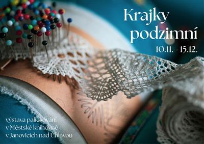 Výstava paličkování kroužku při MKS Klatovy a kroužku při Městské knihovně v Janovicích. Otevřena je v provozní době knihovny: PO 13 - 18, ST 9 - 12 a 13 - 18, ČT 9 - 14 hodin. Srdečně vás zveme.