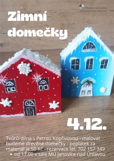 ART studio: zimní dekorace, zimní dřevěné domečky si můžete vymalovat s lektorkou Petrou Kopřivovou. Srdečně vás zveme.