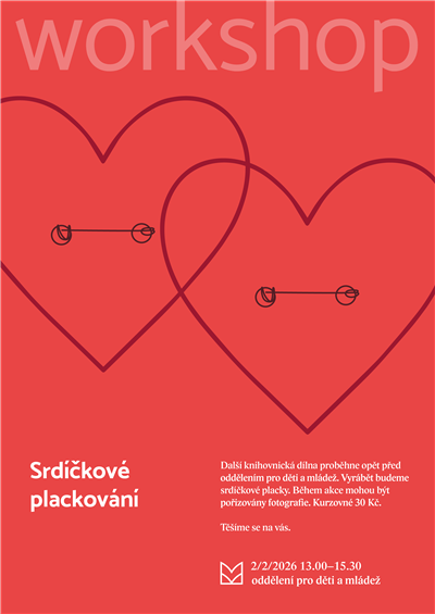Přijďte si s námi vyrobit srdíčkové placky. Knihovnická dílna proběhne jako obvykle před oddělením pro děti a mládež. Kurzovné 30 Kč. Těšíme se na vás!