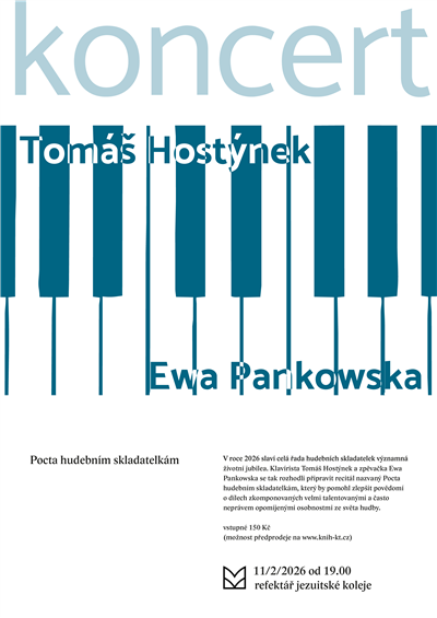 Zveme vás na recitál klavíristy Tomáše Hostýnka a zpěvačky Ewy Pankowské, který bude poctou talentovaným hudebním skladatelkám, často neprávem opomíjeným. Vstupné 150 Kč, v předprodeji 100 Kč, děti v doprovodu rodičů zdarma.