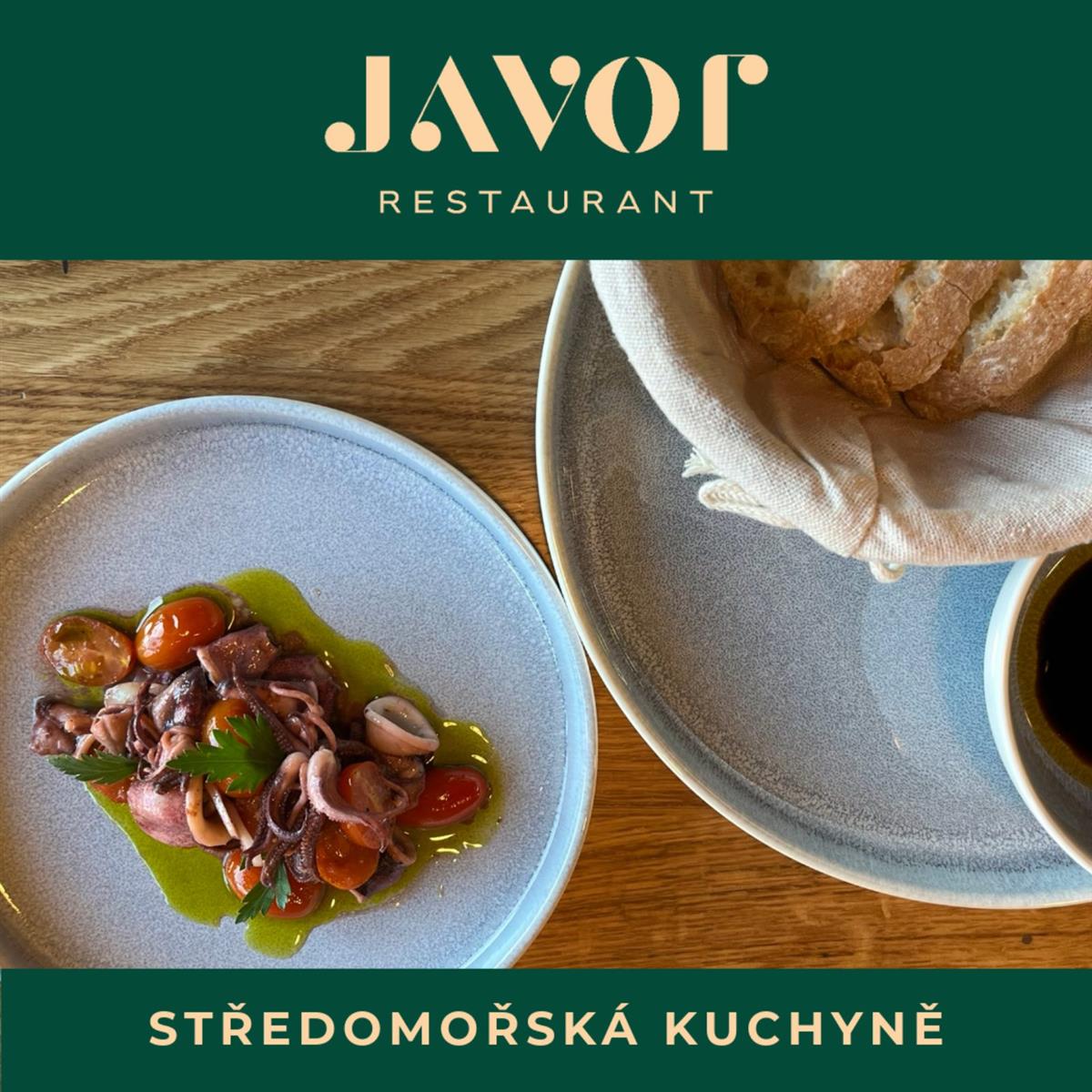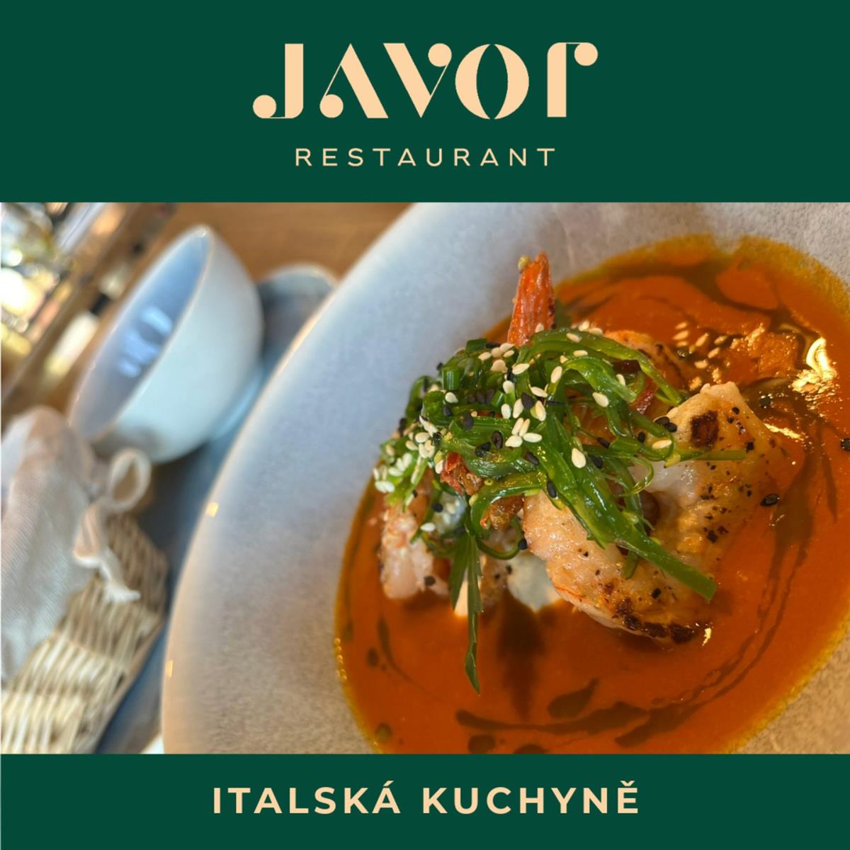 Restaurant Javor nabízí příjemnou atmosféru a kuchyni inspirovanou středomořskými chutěmi, především tradiční italskou gastronomií. Menu je připravováno z čerstvých surovin s důrazem na kvalitu, jednoduchost a poctivou chuť.