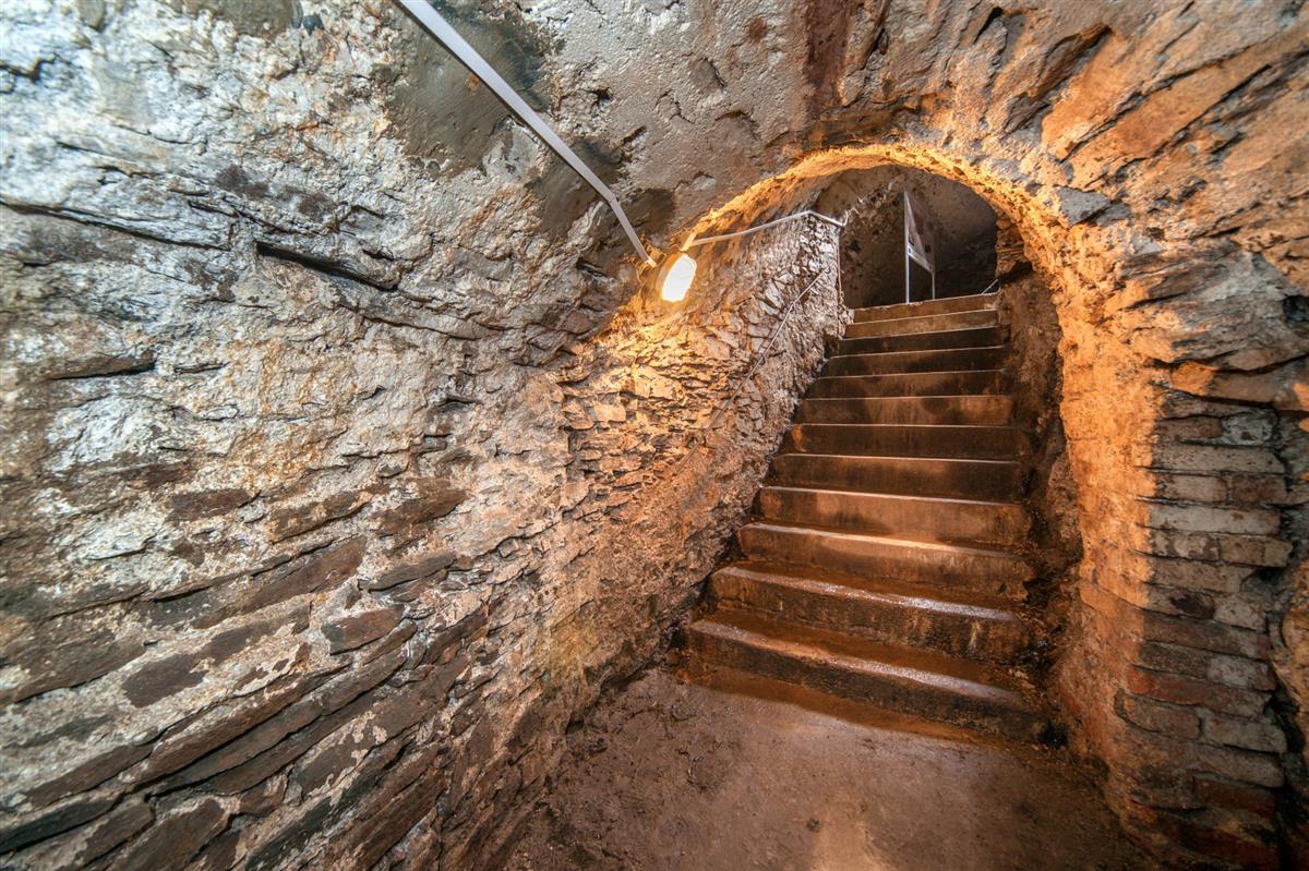 Sklepení původně sloužilo jako sklad a lednice pro potřeby domu. Pověst vypráví o labyrintu temných chodeb, které údajně vedou až na samotný hrad Kašperk. Dnes tyto prostory slouží jako zimoviště netopýrů, z tohoto důvodu je sklepení veřejnosti přístupné od června do září.