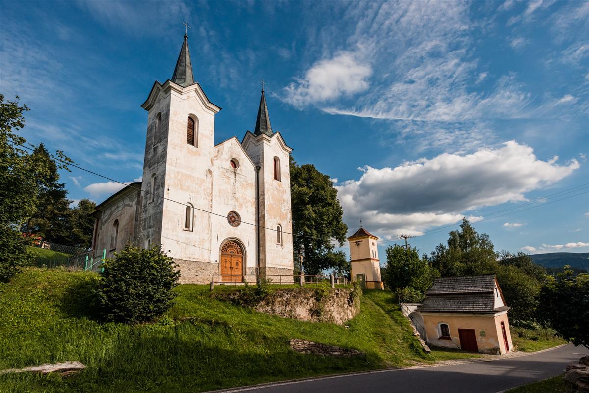 Poutní kostel je nejmladším ze tří kašperskohorských kostelů postavený v novorománském slohu v letech 1850 – 1867. Sousední kaple P. M. Klatovské, zvaná Grantl, vznikla z důvodů tradice konání mariánských poutí, její kapacita však postupem času nestačila velkému přílivu poutníků, a proto se přistoupilo ke stavbě nového kostela v její blízkosti.