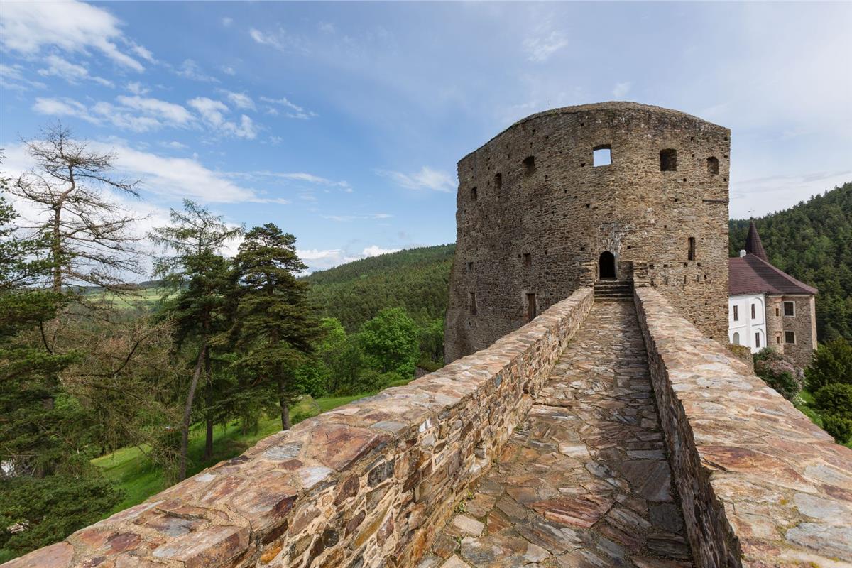 Hrad Velhartice, založený na přelomu 13. a 14. století pány z Budětic, se tyčí na skalním ostrohu nad říčkou Ostružnou. Během své historie byl významným centrem regionu, a to zejména díky své roli útočiště pro české korunovační klenoty v 15. století. V 17. století hrad prošel renesančními úpravami, když panství získal císařský generál Martin de Hoeff-Huerta, který zde nechal postavit nový palác. Dnes je hrad ve správě státu a nabízí několik prohlídkových okruhů, včetně expozice "Šumavská klenotnice", která přibližuje příběh tajného převozu korunovačních klenotů na hrad ve Velharticích. Hrad Velhartice je známý svým unikátním kamenným mostem spojujícím palác s věží, což je architektonický prvek ojedinělý v českých zemích.