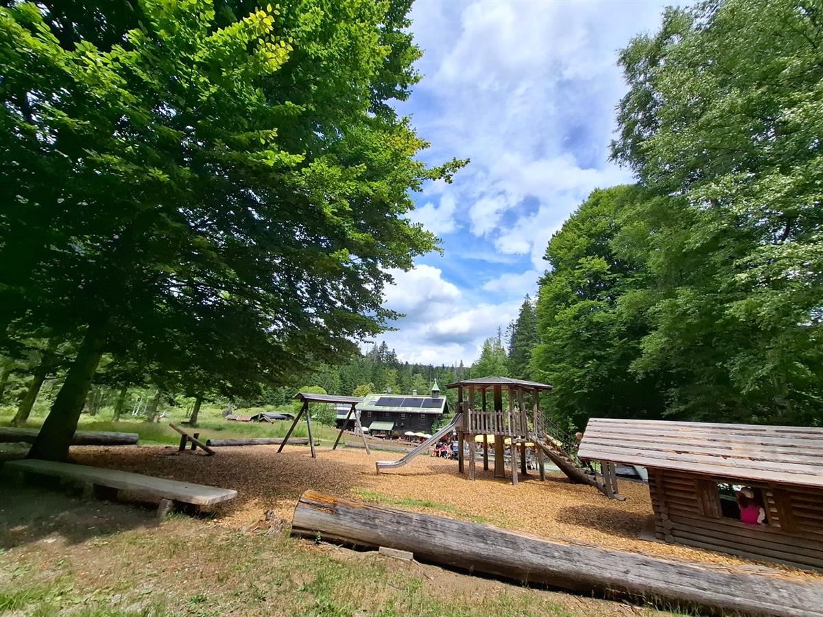 Z nádraží v Bavorské Rudě se vydejte po černé turistické trase, která se dále napojuje na žlutou stezku zvanou Bussard- und Luchsfährte (Stezka káněte a rysa). Čeká vás táhlé stoupání k sedlu Hochbergsattel, které vede krásným horským lesem – doporučujeme vzít si s sebou dostatek vody. Po dosažení nejvyššího bodu se trasa příjemně svažuje dolů k Schwellhäuslu, historické lesní boudě, kde si můžete dopřát zaslouženou pauzu a občerstvení v zahradní restauraci u potoka.