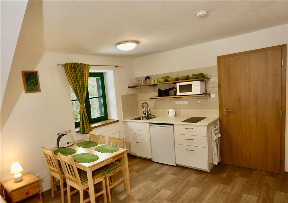 Kavárna disponuje nádhernou terasou s výhledem do krásně upravené zahrady a nabízí kromě nápojů také domácí zákusky a studenou kuchyni zaměřenou na regionální potraviny z místních farem.