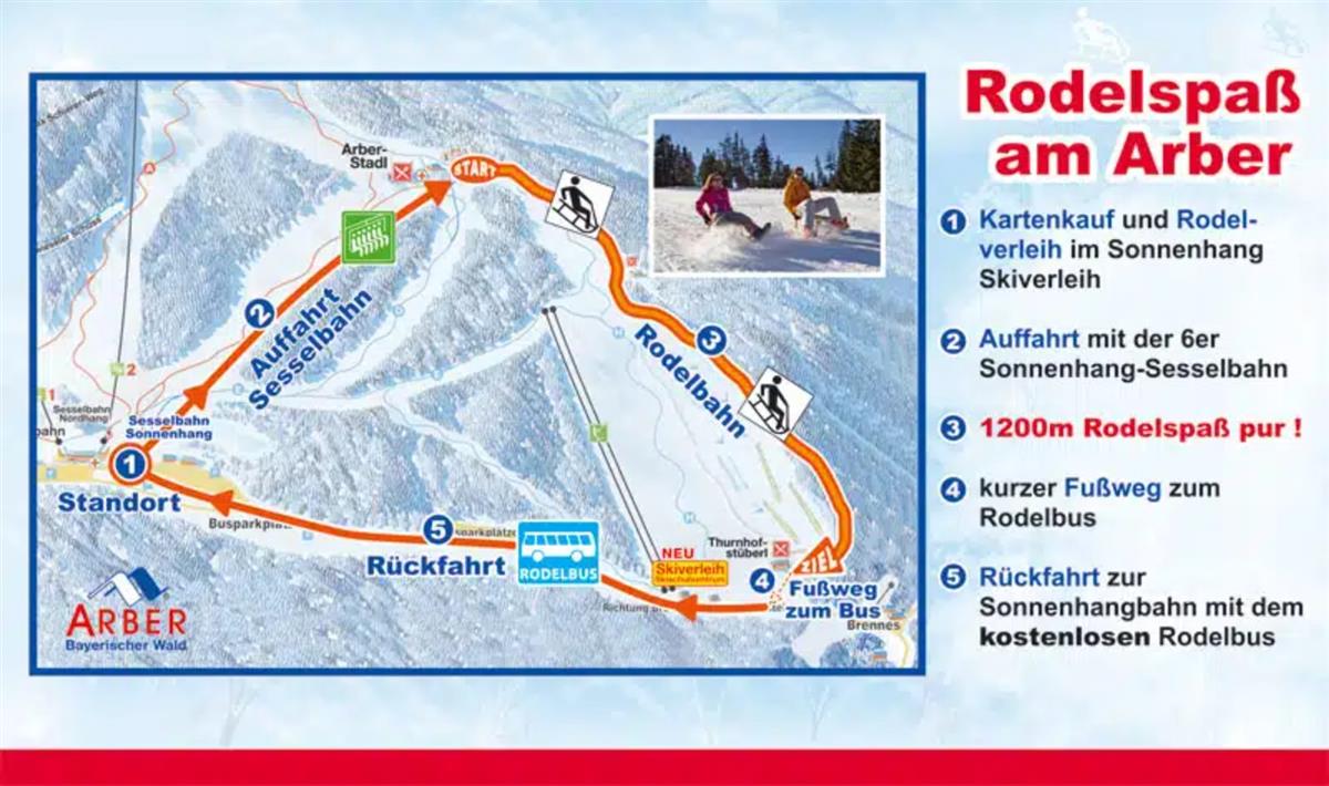 Rodinná sáňkařská dráha na Velkém Javoru měří přibližně 1,2 km a začíná u horní stanice sedačkové lanovky Sonnenhang. Trasa je nenáročná, vhodná pro děti i dospělé, a končí u restaurace Thurnhofstüberl poblíž dětského areálu ArBär-Kinderland. Pro návrat nahoru lze využít lanovku nebo bezplatný rodelbus. U dolní stanice je možné si půjčit sáňky. Menší děti mohou využít krátký sjezd a dopravní pásy v dětském parku. Aktuální provoz dráhy doporučujeme ověřit ráno před návštěvou. Oblíbená je také večerní jízda při umělém osvětlení ve vybraných termínech.