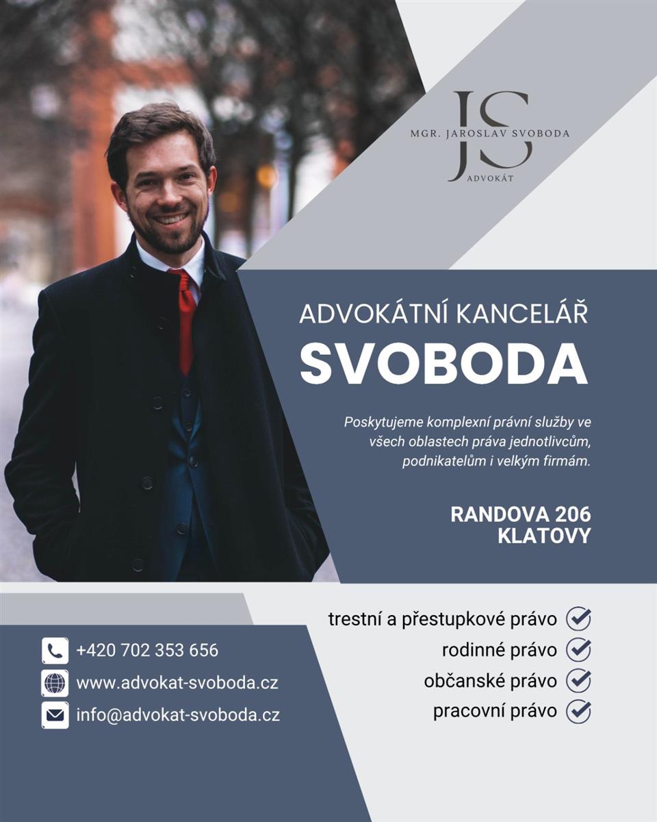 Advokátní kancelář Svoboda nabízí komplexní právní služby ve všech oblastech práva v Klatovech a širokém okolí. Advokátní kancelář Svoboda byla založena s cílem poskytovat právní služby ve všech oblastech práva s důrazem na péči, kvalitu, odbornost a efektivitu.