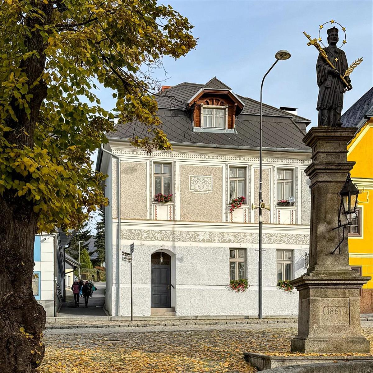 Penzion se nachází v jednom z nestarších domů v Kašperských Horách. Historicky cenné je především novorenesanční sgrafito a ze střechy vystupující secesní vikýř podkroví. Pro milovníky seriálu Policie Modrava může být zajímavá poloha penzionu v bezprostřední blízkosti policejní stanice.