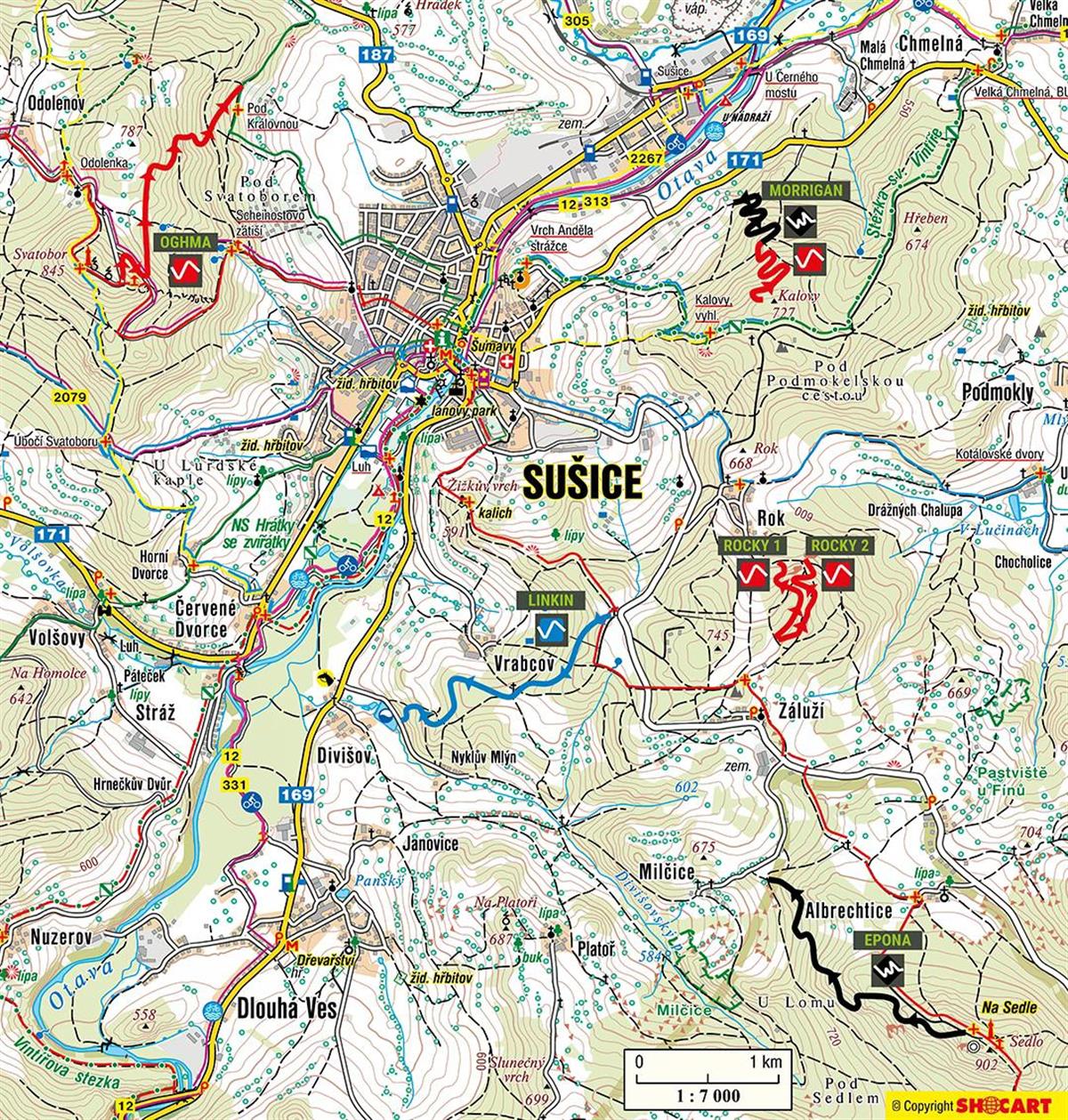 Celkem šest trailů různých obtížností nese názvy inspirované keltskou mytologií, čímž tvůrci citlivě propojili sportovní zážitek s historií a charakterem místa.